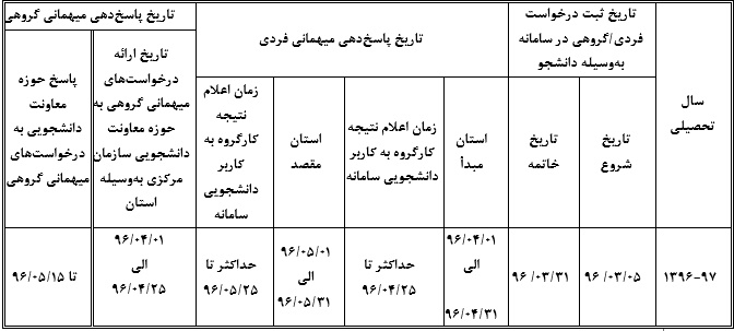 تقویم اجرایی مربوط به میهمانی و انتقال دانشجویان(سال تحصیلی 97-1396)