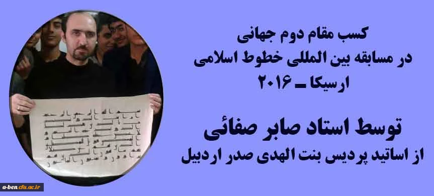 کسب مقام دوم جهانی در معتبرترین مسابقه ی بین المللی خطوط اسلامی ارسیکا 2016 در ترکیه توسط استاد صابر صفائی از اساتید پردیس بنت الهدی صدر اردبیل