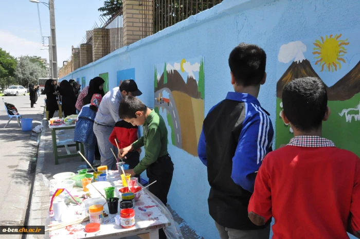 دست های کوچک اعضای کانون پرورش فکری کودک و نوجوان در زیباسازی دیوار بیرونی پردیس