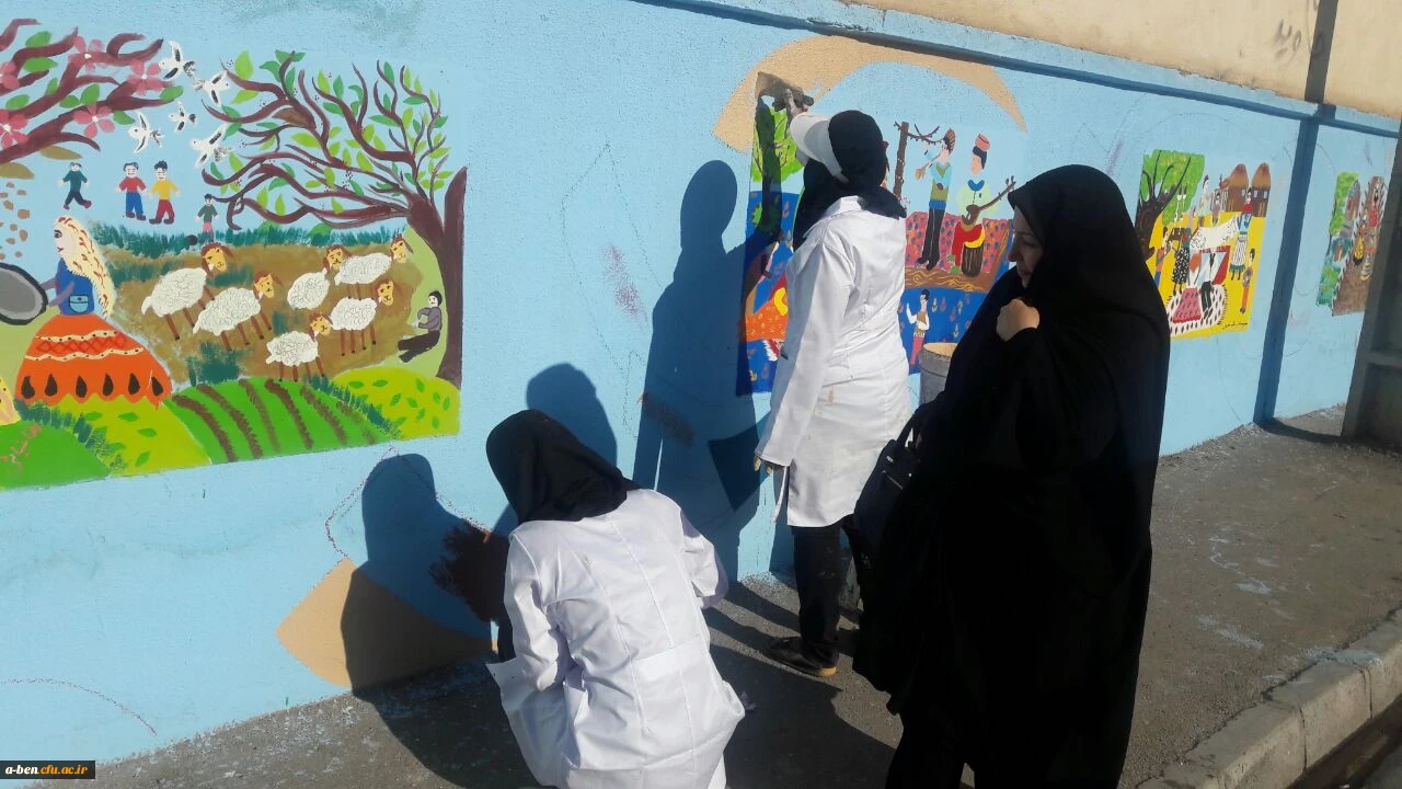 دست های کوچک اعضای کانون پرورش فکری کودک و نوجوان در زیباسازی دیوار بیرونی پردیس