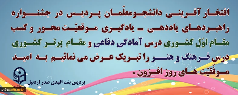 افتخارآفرینی دانشجومعلمان پردیس بنت الهدی صدر اردبیل در جشنواره کشوری راهبردهای یاددهی- یادگیری موقعیت محور