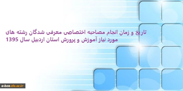 تاریخ و زمان انجام مصاحبه اختصاصی معرفی شدگان رشته های مورد نیاز آموزش و پرورش استان اردبیل سال 1395