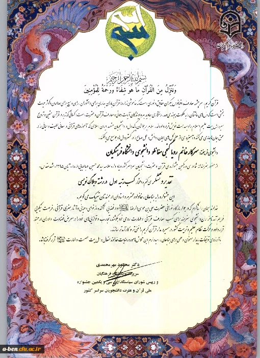 افتخار آفرینی دانشجو معلمان پردیس بنت الهدی صدر اردبیل در سی و یکمین جشنواره ملی قرآن و عترت دانشجویان سراسر کشور