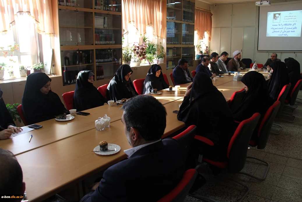 نشست صمیمی سرپرست مدیریت امور پردیس های استان و سرپرست دفتر نهاد مقام معظم رهبری دانشگاه فرهنگیان با مجموعه کارکنان بنت الهدی صدر